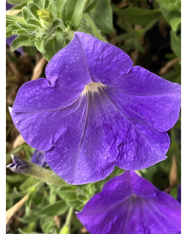 Sehr wüchsige, grossblumige Hängepetunie in blau.