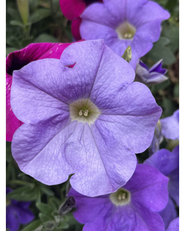 Sehr wüchsige, grossblumige Hängepetunie in hellblau.
