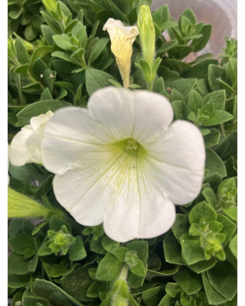 Sehr wüchsige, grossblumige Hängepetunie in weiss.