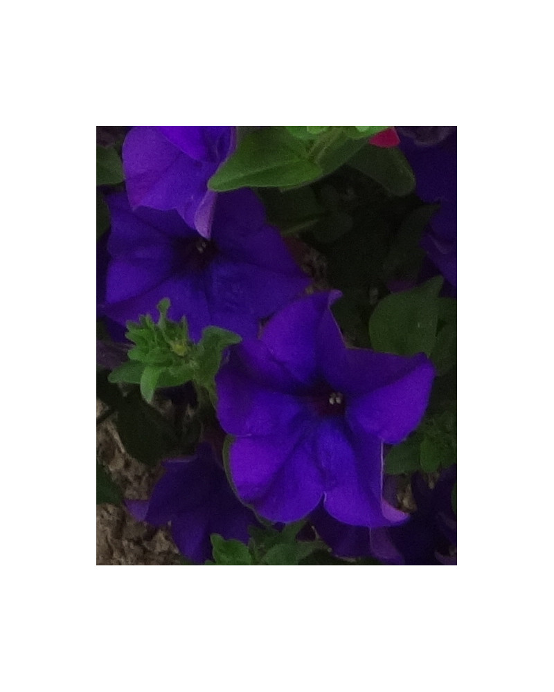 Schöne, grossblumige Hängepetunie in blau.