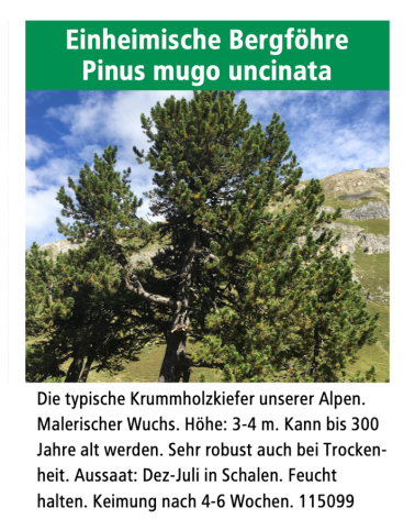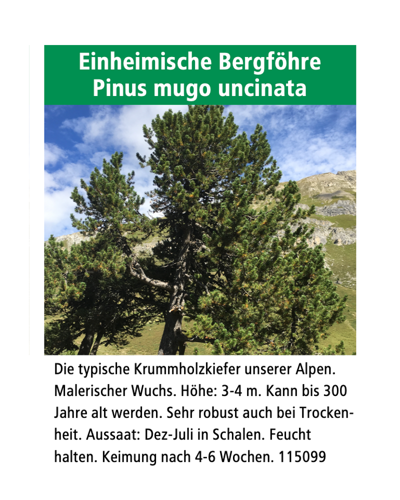 Die typische Krummholzkiefer unserer Alpen, für Lagen über 1000 Meter ü.M. geeignet