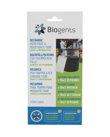 Die Tigermücken werden in die Falle gelockt und versuchen durch den transparenten Bereich zu entkommen. Dabei bleiben sie an der klebrigen Oberfläche der Sticky Card hängen. Das Barrierenetz verhindert, dass sie ihre Eier ins Wasser am Boden der Falle ablegen. Die Sticky Cards sollten alle zwei Wochen oder bei Verlust der Klebkraft gewechselt werden.