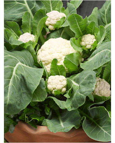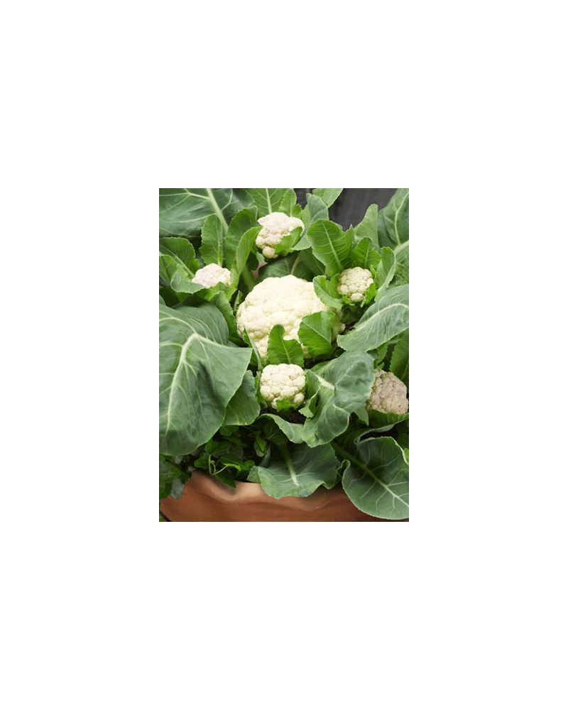 Eine einzige Blumenkohlpflanze breitet sich aus und bildet immer wieder neue Seitentriebe. Die Blüten werden ca. 12cm bis maximal 15cm. Schmeckt ausgezeichnet gekocht, gedämpft oder gebraten. Für Töpfe, Balkon oder Garten. Wächst am besten in sonnig bis halbschattigen Bereichen.